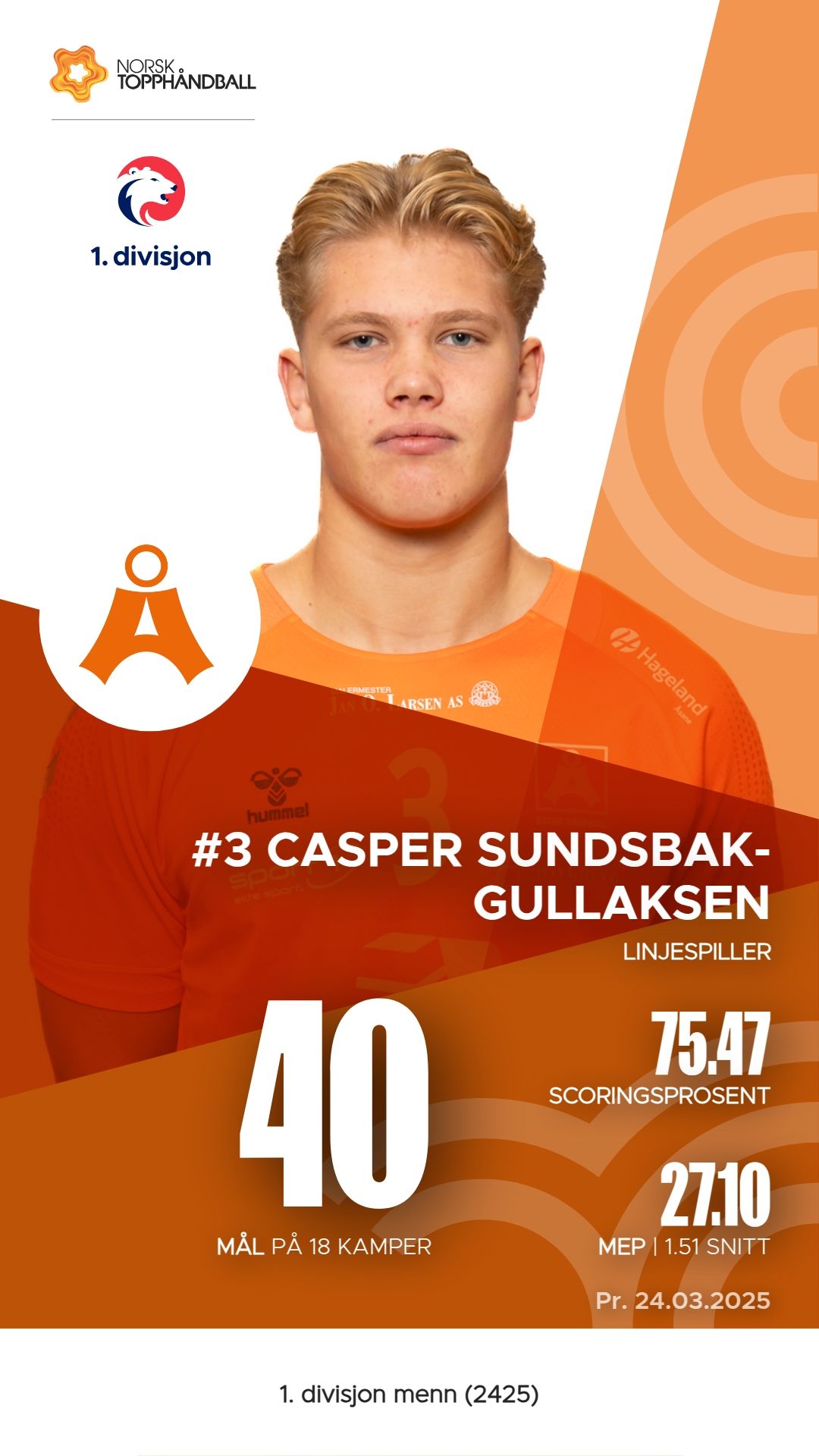 Åsane har flere fremtredende spillere som bidrar betydelig til lagets prestasjoner i 1. divisjon menn. Casper Sundsbak-Gullaksen har scoret 40 mål og er kjent for sin effektivitet med en M.E.P. på 27,1. Matias Wilkensen Lygre har også vært en nøkkelspiller, med 45 mål og 5 assists, noe som gir ham en M.E.P. på 23,6. Emil Mostraum Johnsen følger nært etter med 43 mål og 12 assists, og en M.E.P. på 24,5. Disse spillerne har vist solid form og er viktige for Åsanes konkurranseevne i sesongen.