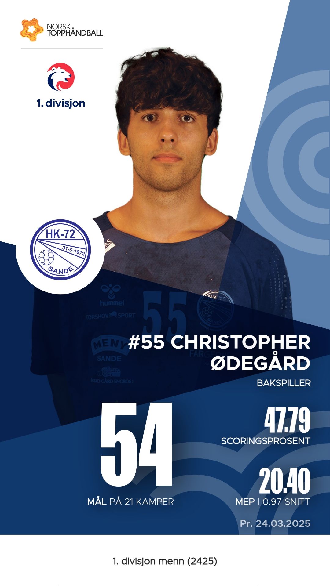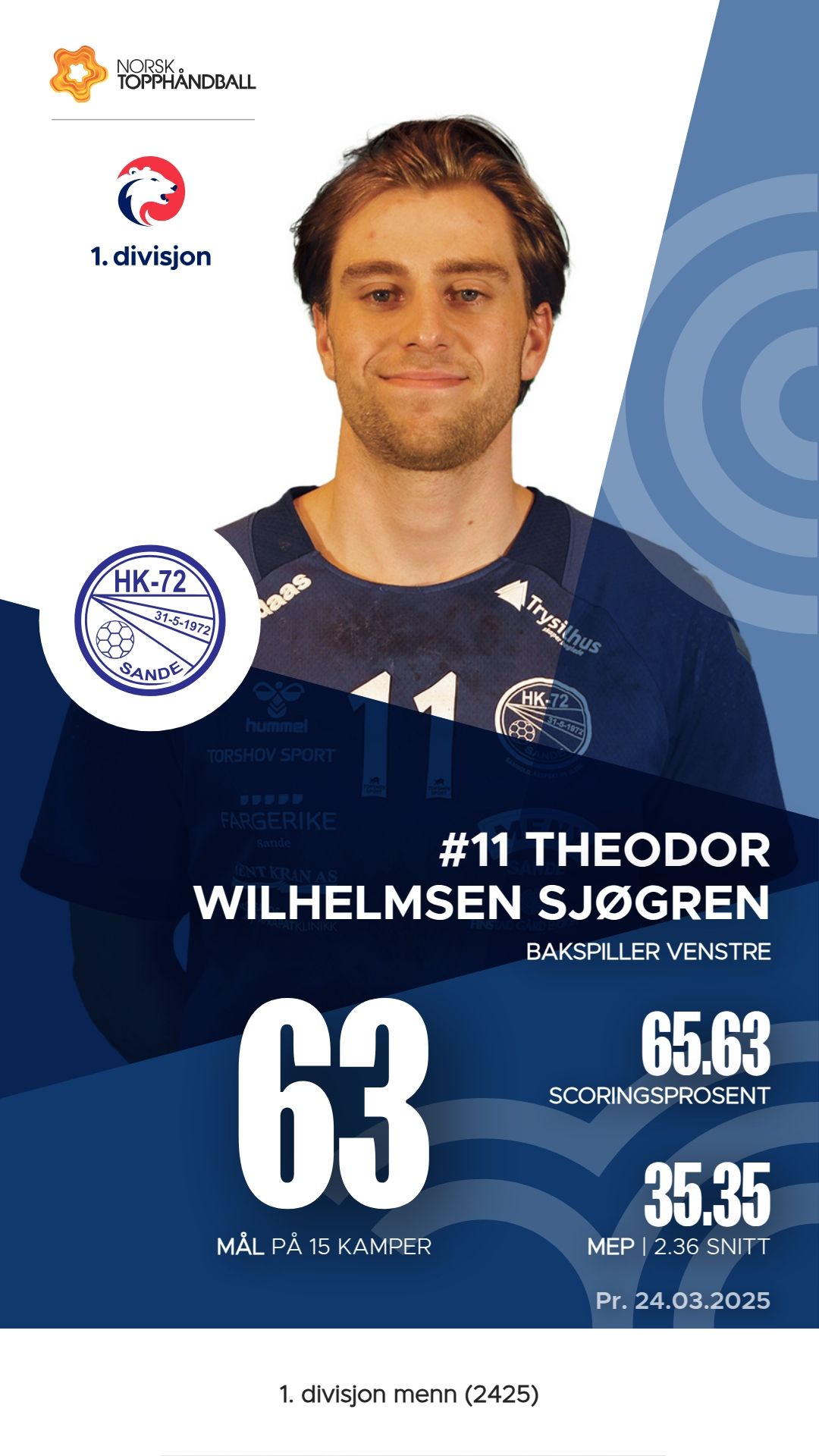 HK-72 Sande har flere fremragende spillere som har utmerket seg denne sesongen. Theodor Wilhelmsen Sjøgren er en av lagets toppscorere med 63 mål fra 96 skudd, samt 13 assists og en M.E.P. på 35,35. Christopher Ødegård følger nært etter med 54 mål, 24 assists og en M.E.P. på 20,40. Bendik Harvik Kjeseth har også vært en viktig bidragsyter med 47 mål og 12 assists, og en M.E.P. på 33. Disse spillerne har vist seg å være sentrale i HK-72 Sande sin innsats i 1. divisjon menn.