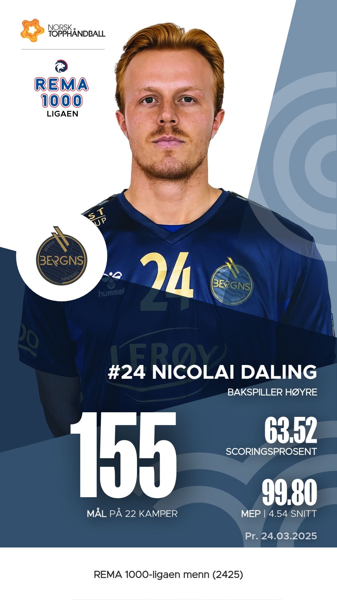 Bergen håndball har flere fremragende spillere denne sesongen. Nicolai Daling har vært en betydelig bidragsyter med 155 mål og 95 assists, samt en M.E.P. på 99,8, noe som viser hans effektivitet på banen. Eskil Dahl Reitan følger tett etter med 122 mål og 134 assists, og en imponerende M.E.P. på 104. Jon Obrestad Salte har også gjort seg bemerket med 66 mål og 8 assists. Sammen reflekterer disse spillerne en sterk offensiv kapasitet, som er avgjørende for lagets prestasjoner i REMA 1000-ligaen.