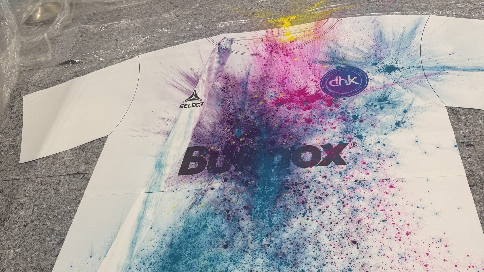 Konseptet kom i stand etter en brainstorming på DHK-kontoret tidligere i høst. Da DHK møtte Sandefjord til dyst i Drammenshallen ble det ikke bare seier 33-24. Barn og unge fikk muligheten til å kaste maling (!) på drakter. Resultatet? DHK sin drakt special made for Runar-kampen søndag kveld.