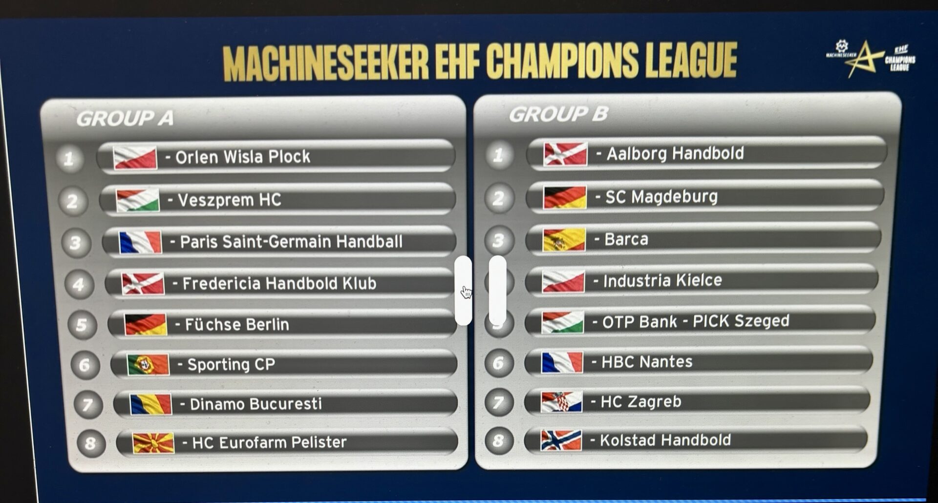 Aalborg, Magdeburg, Barca, Kielce, Pick Szeged, Nantes, Zagreb og KOLSTAD