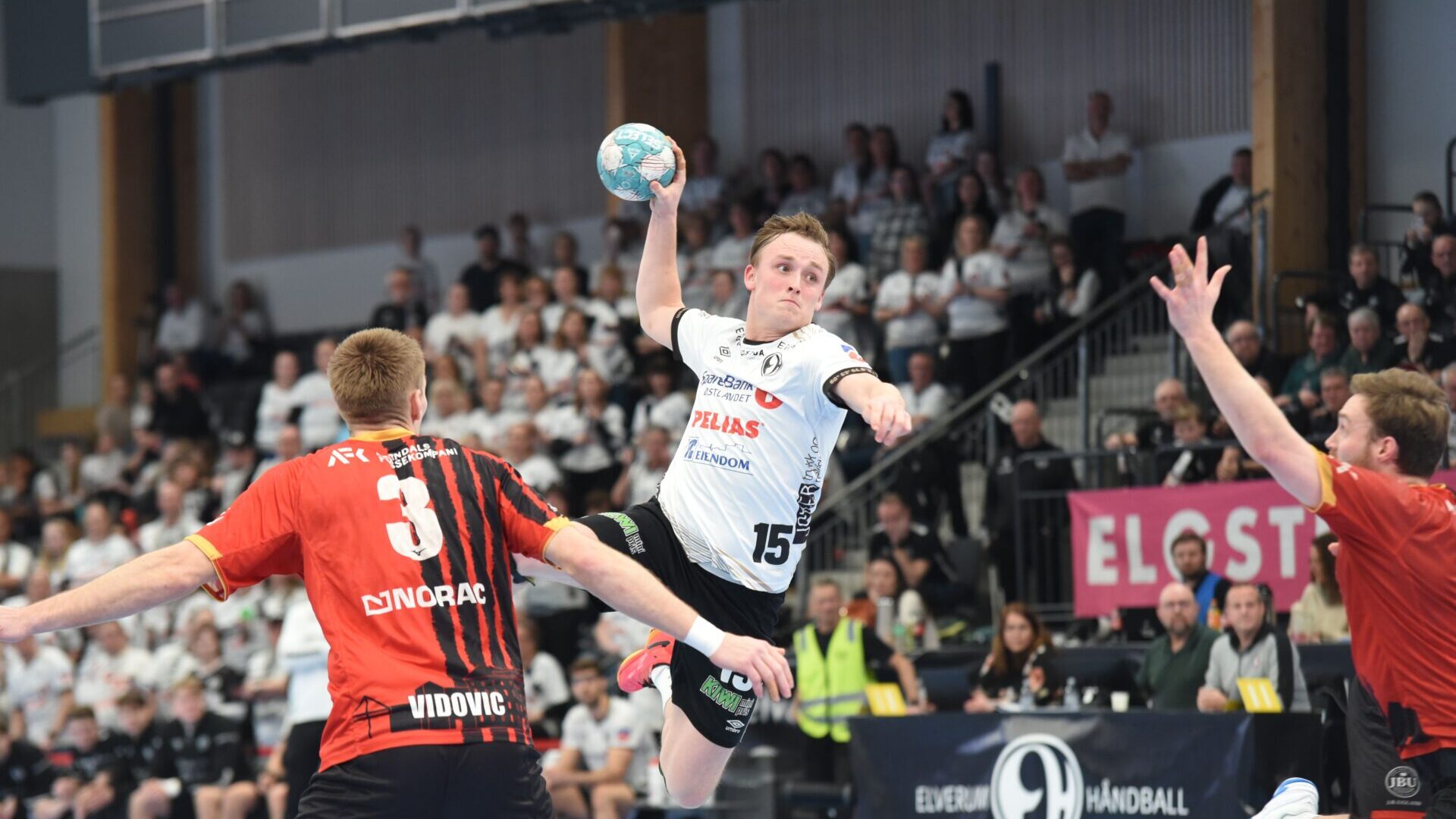 På vei inn mot pause fulgte lagene hverandre som skygger. Heroisk innsats i Elverum-forsvaret sørget for at lagene gikk til hvile på stillingen 15-15.