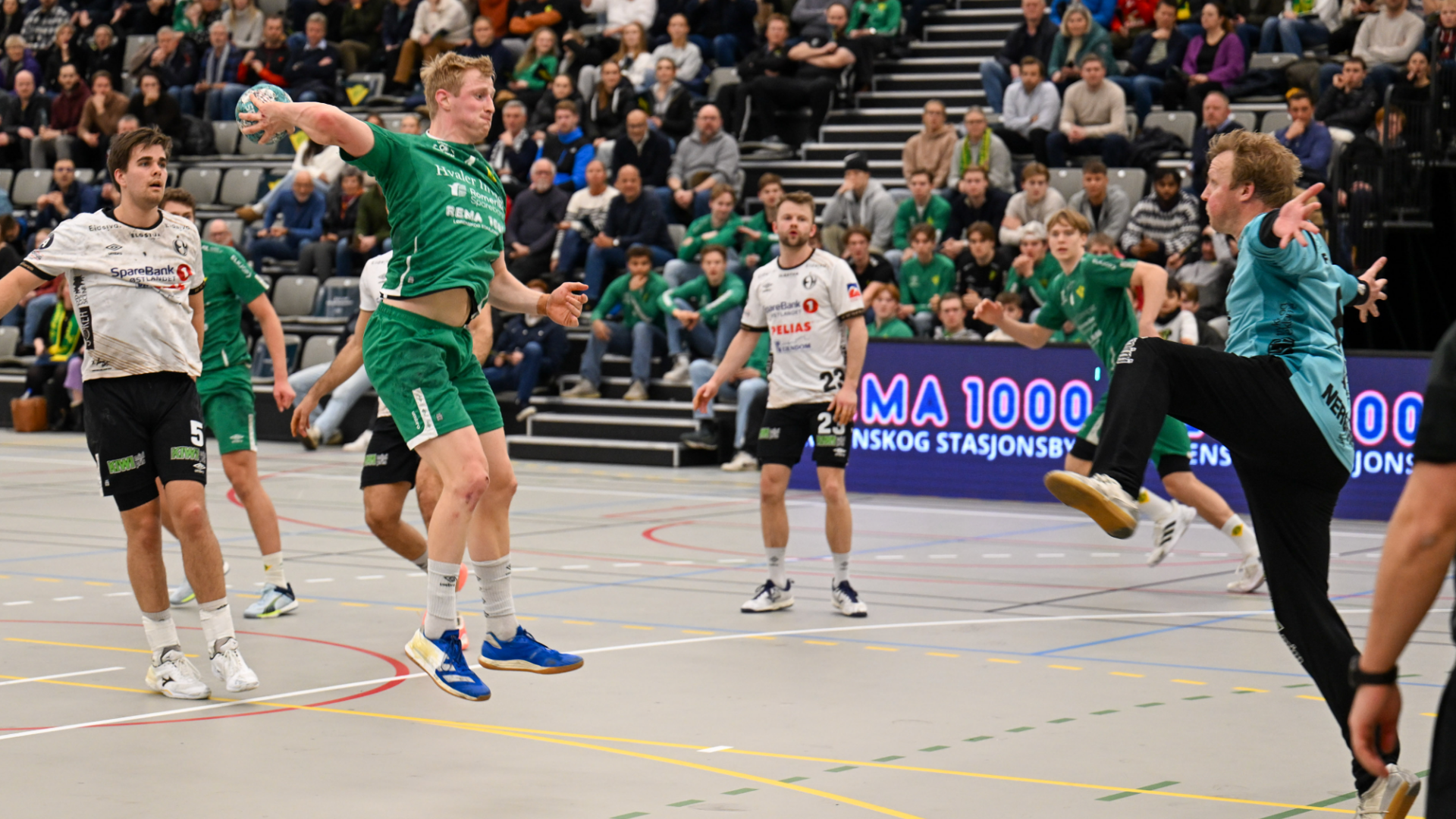 Etter 23 minutter spilt var Elverum foran 24-27. Kun 3 minutter senere utlignet derimot Arian Olsen Grønskei til 27-27 og lagene var igjen likt før kampens avgjørende minutter.