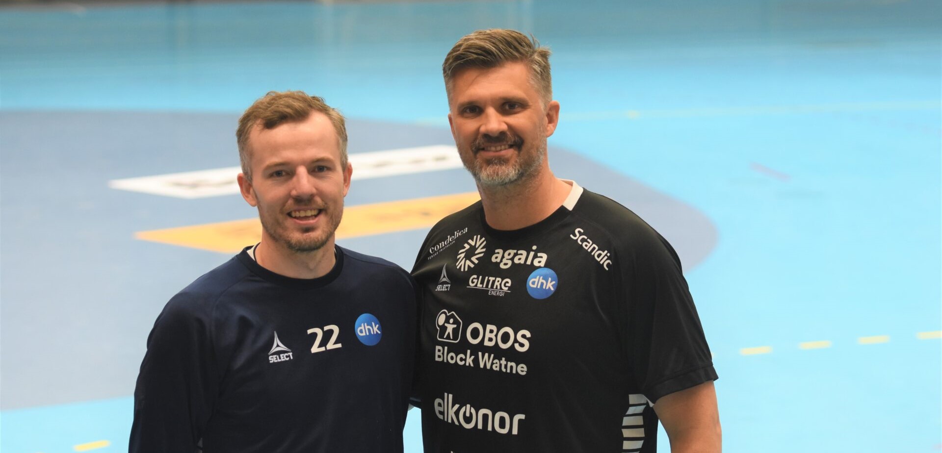 Gøran Sørheim fra DHKs første trening i oppkjøringen til sesongen 2023/2024. I bakgrunnen trener Kristian Kjelling. Når sesongen nærmer seg vil treningstøyet med 22 være byttet ut med trenertøy med initialene GS på overdelen.