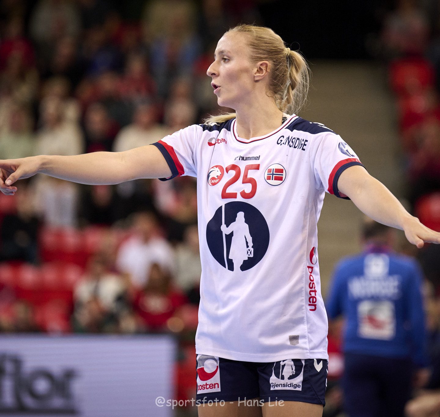 Henny Reistad lekte inn sitt 8. mål for kvelden med en vakker rulle fra syvmeter til 26-19 med ti minutter igjen på tavla. Norge økte til 27-19 like etter da danskene ikke lyktes med sitt 7 mot 6 spill.