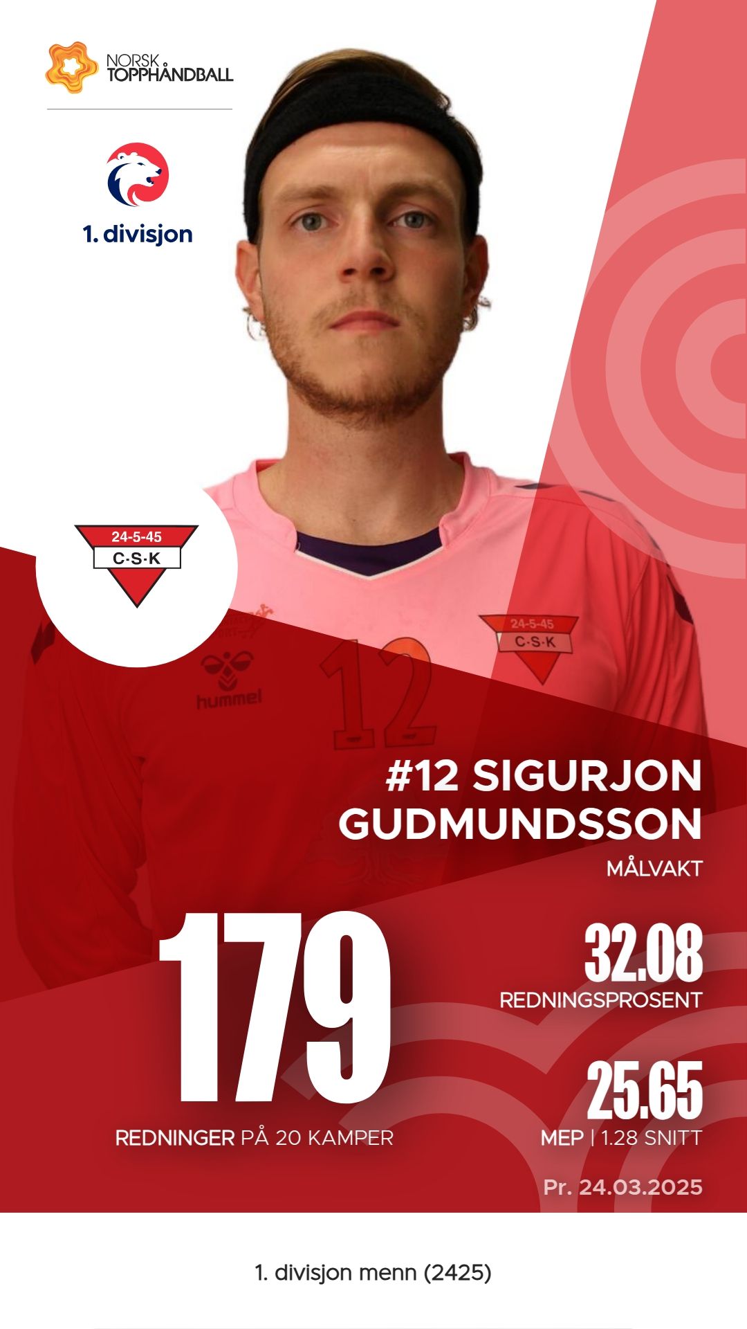 Ciljan Sagosen har vært en fremtredende spiller for Charlottenlund med 124 mål og 121 assists, noe som gir ham en M.E.P. på 93.85. Emre Christoffer Berge har også utmerket seg, med 80 mål og 101 assists, og en M.E.P. på 59.8. Erik Magnus Skauge Jakobsen har bidratt med 59 mål, men har ikke registrert assists. På keeperplass har Sigurjon Gudmundsson gjort en solid innsats med 179 redninger, og en M.E.P. på 25.65. Disse spillerne har vært sentrale for lagets prestasjoner denne sesongen.