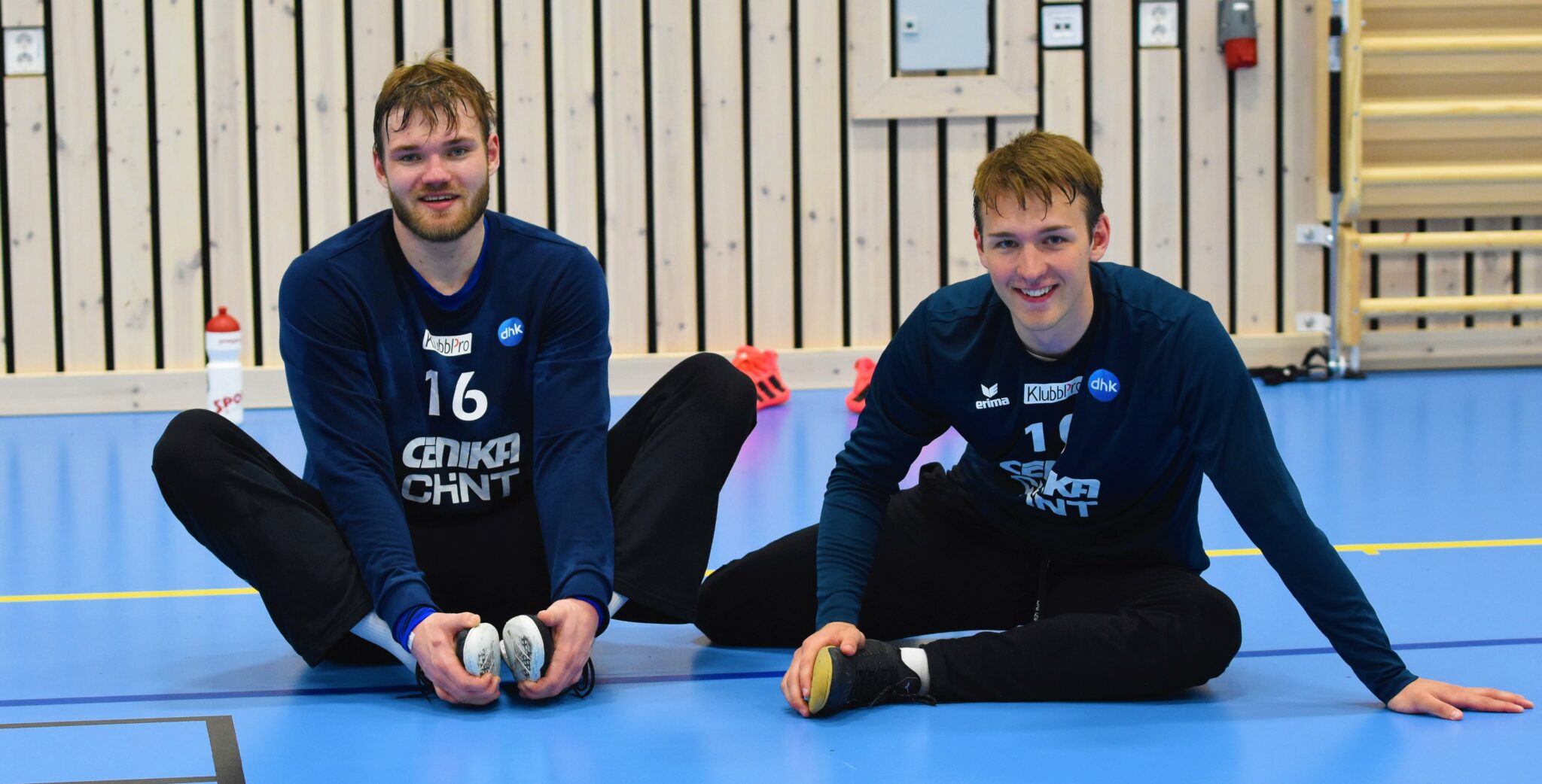 Her ser det ut som Andrè Bergsholm Kristensen er litt skeptisk til å spille sammen med Sander Drange Heieren. DHK-målvakten ble jo akkurat kåret til Årets målvakt i Norge. Men Bergsholm Kristensen gleder seg til å utvikle ferdighetene sine sammen med Sander. Foto Roy Johnsen.