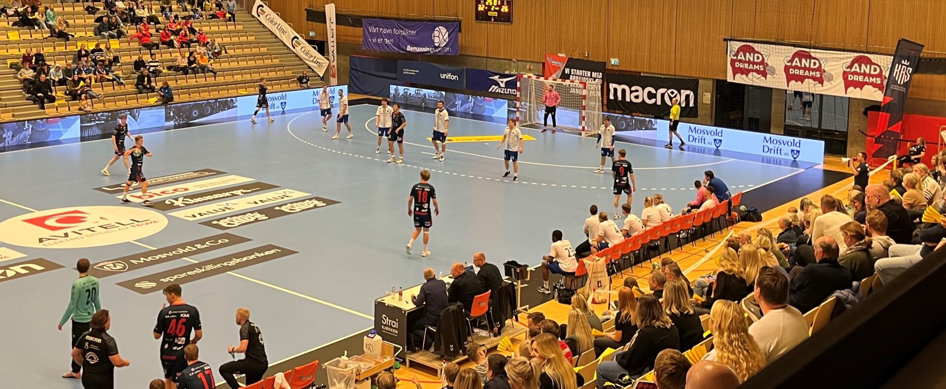 Halvveis ut i førsteomgangen var stillingen 9-7 til hjemmelaget, men for å roe nervene til hjemmepublikummet, skulle vi gjerne ha sett at vertene dro litt i fra bortelaget fram mot pausen.