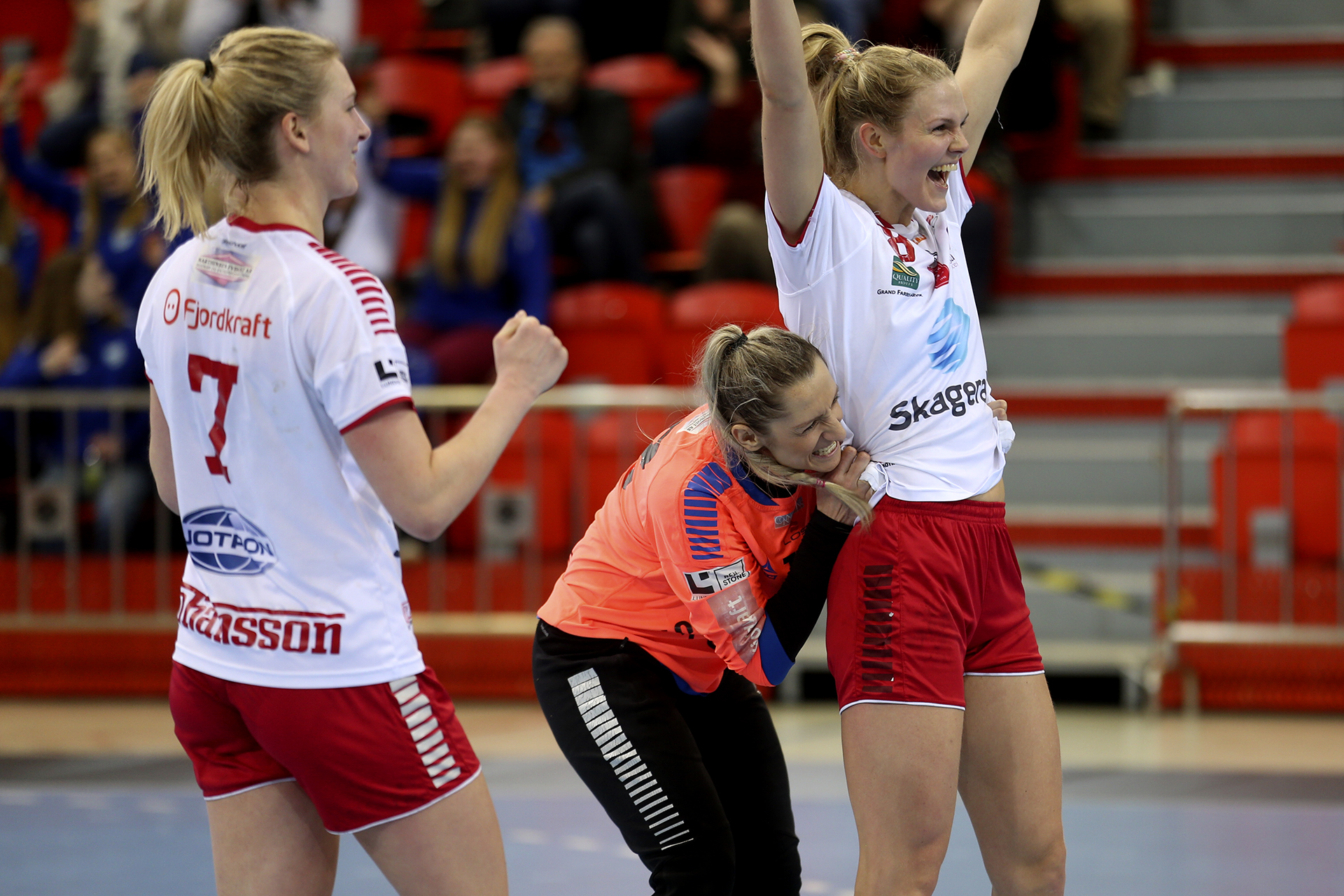 Sara Hjaltadottir blir hjemmelagets toppscorer med 7 mål på ti forsøk, Julie Nygård scorer fem mål på 11 skudd.