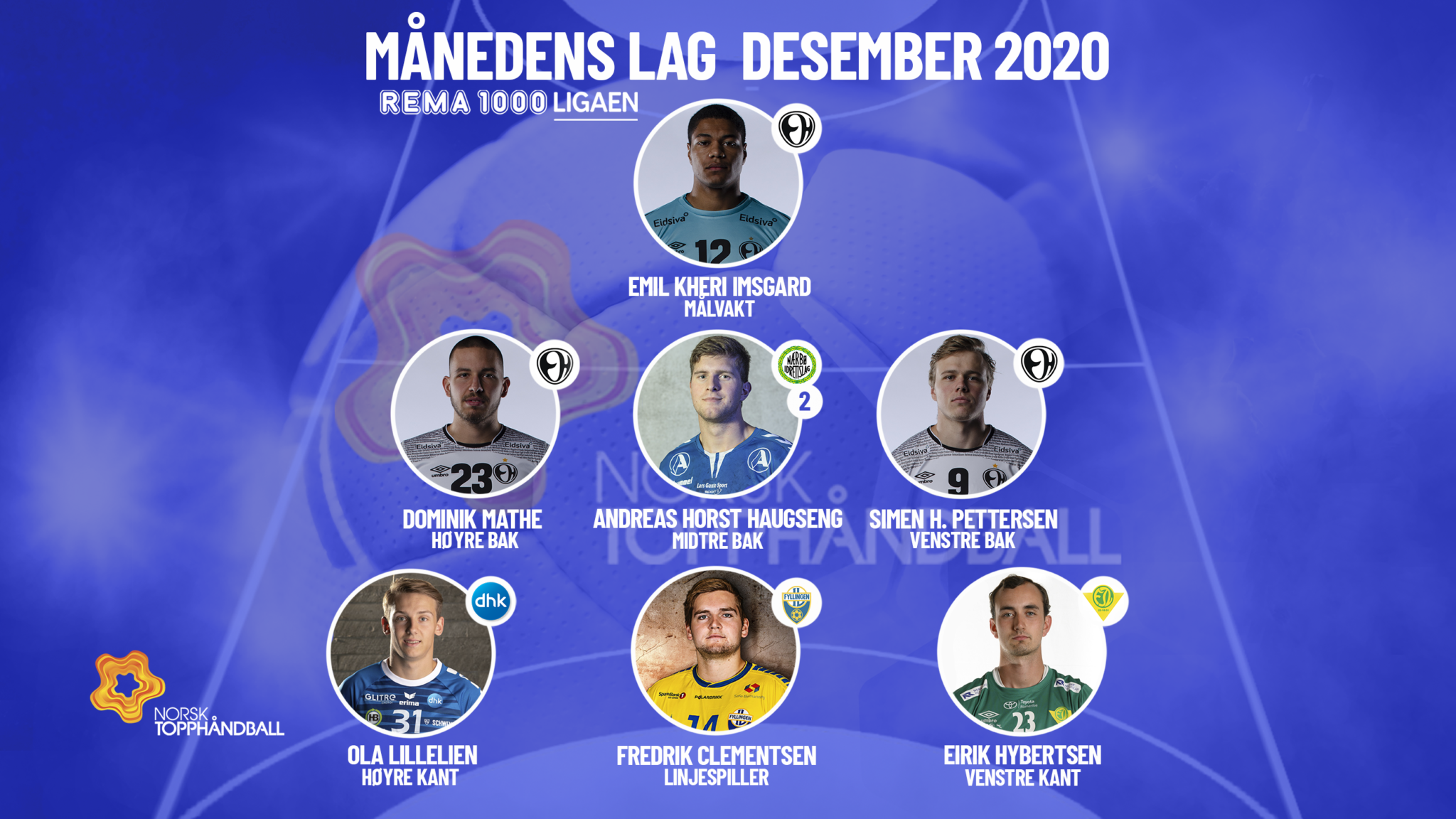 Månedens lag for menn er kåret. Andreas Horst Haugseng er med for andre gang som midtre bakspiller, på de andre plassene er det nye ansikter.