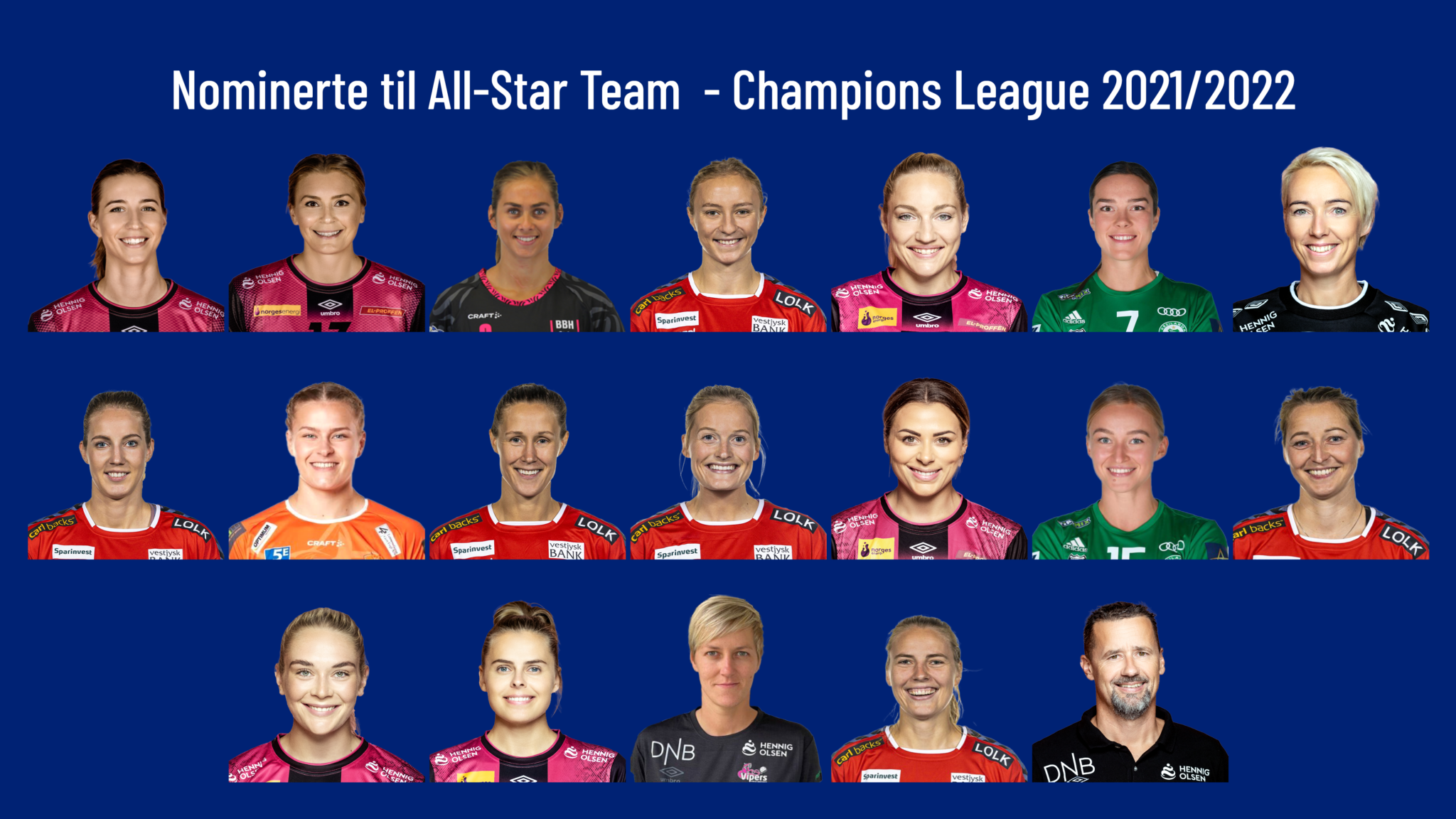Veldig mange spillere har prestert meget bra i Champions League denne sesongen. 54 spillere og 6 trenere er nominert til turneringens All-star-lag. Blant disse finner vi 10 norske jenter som spiller i utlandet, 8 spillere fra Vipers, samt Vipers trener Ole Gustav Gjekstad.