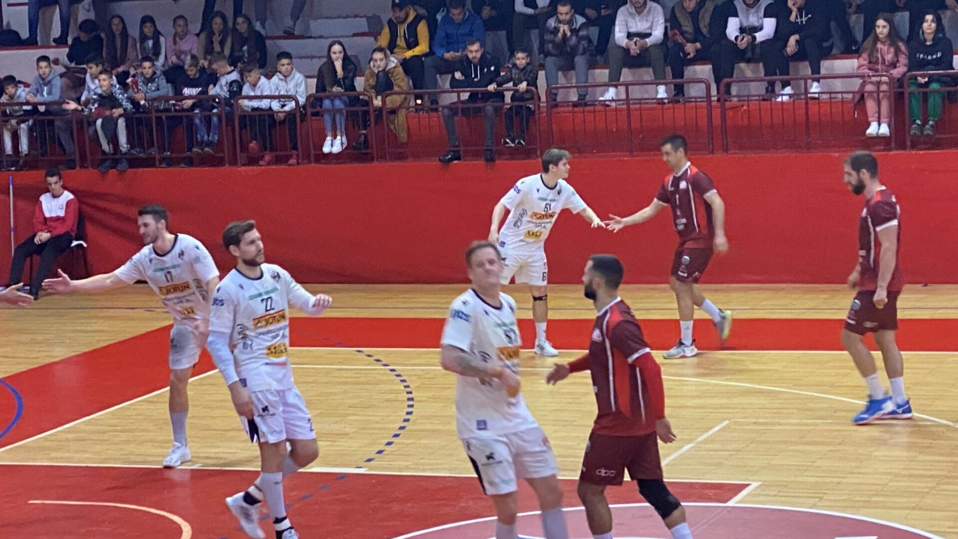 Hjemmelaget gikk ut i hundre med et entusiastisk hjemmepublikum i ryggen, og det virket som om dommerne fra Bosnia gjerne ville ha hjemmelaget videre. Lovcen-Cetinje gikk tøft ut, og vi fikk tidlig store utfordringer. 15 baklengs før pause er ok, men at vi bare scoret 10 er alt for lite, og statistikkene forteller at vi hadde hele 12 bomskudd.