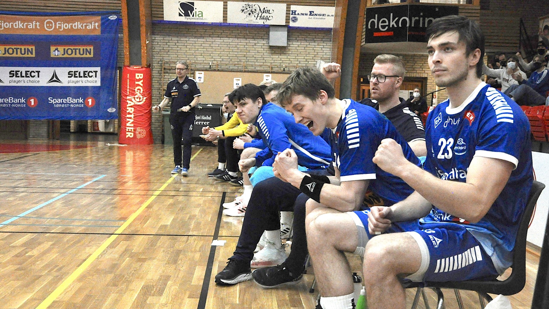 Det som skjedde de neste minuttene var det i hvert fall ingen som hadde trodd på forhånd! 23-23 ble til ledelse 28-24 på bare fem minutter! Tre skåringer av høyrekant Simen Søgaard, én av Anders Jansrud og én av Sander Wennberg Linderud, og vips! steg håpet om seier fram i Jotunhallen.