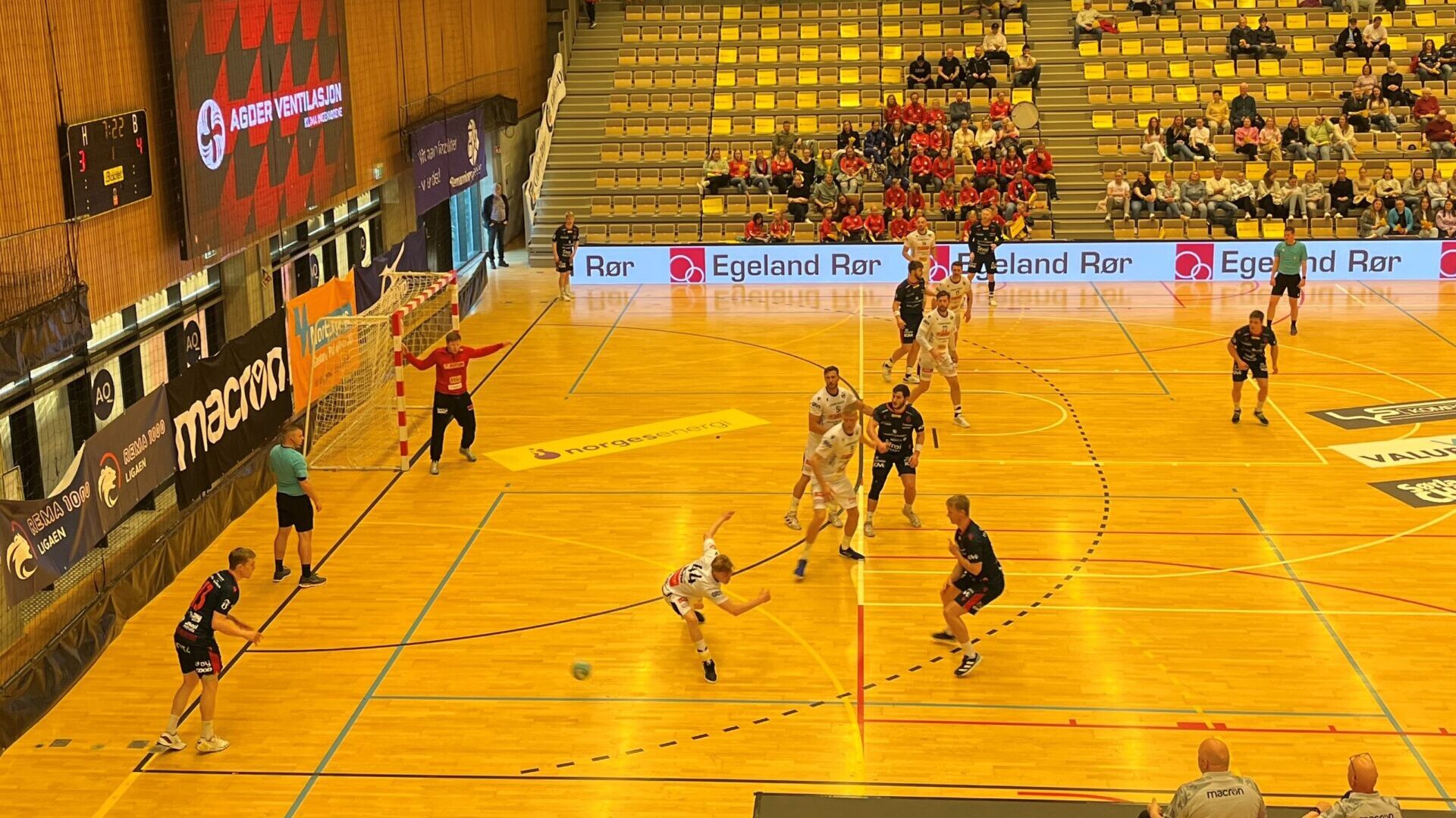 Kampens åpningsminutter bar bud om nok en jevn og spennende kamp. Lagen fulgte hverandre tett i starten av kampen, da kampen rundet ti minutter, var stillinga 5-5 i Aquarama. Gledelig var det å observere at Herman Bredal Oftedal fortsatt der han slapp i forrige kamp, og sto bak KRS sine to første mål i dagens kamp.
