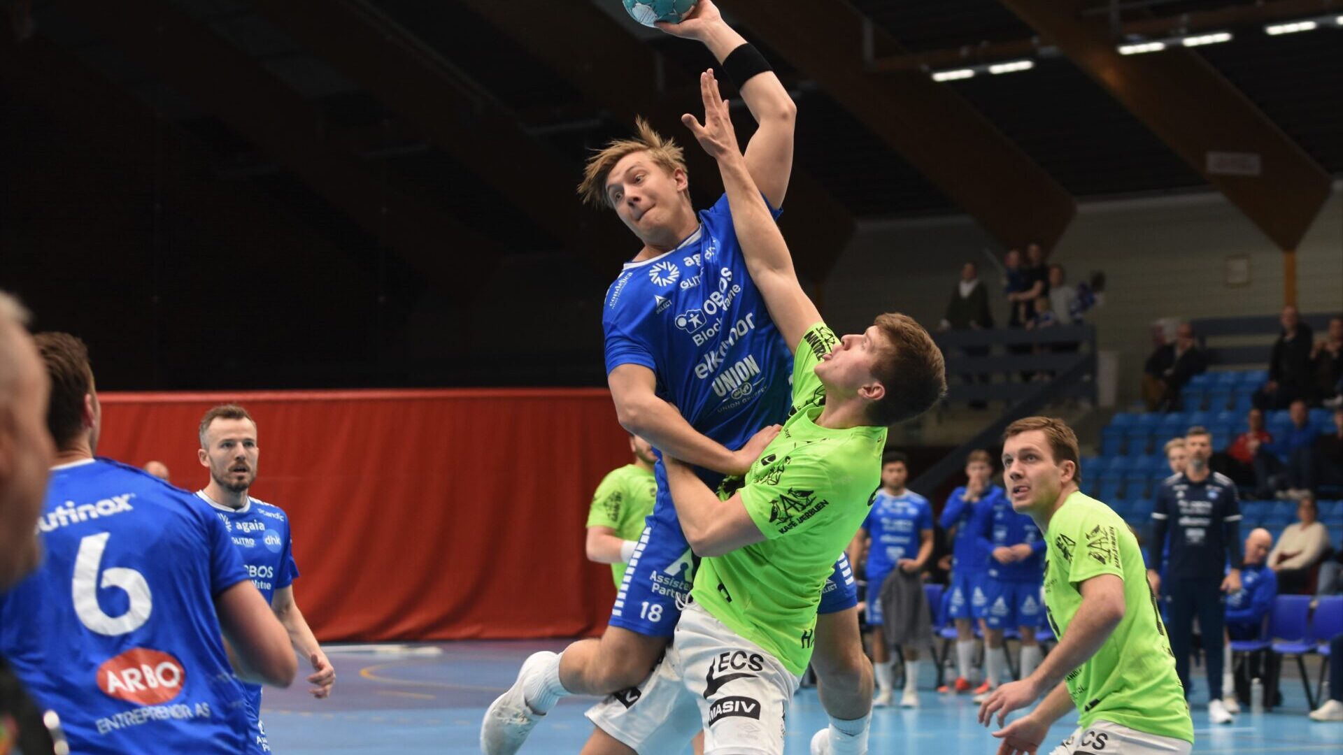 Det sto 9-8 til DHK etter de første 30 minuttene etter bare å ha scoret to mål de ti siste minuttene av omgangen, og da hadde Viktor Petersen Norberg stått for fem av de ni målene. Norberg gikk for øvrig målløs av banen etter pause, og stoppet dermed på fem mål. DHK prøvde seg også med syv mot seks-spill- uten at det var noen ubetinget suksess.