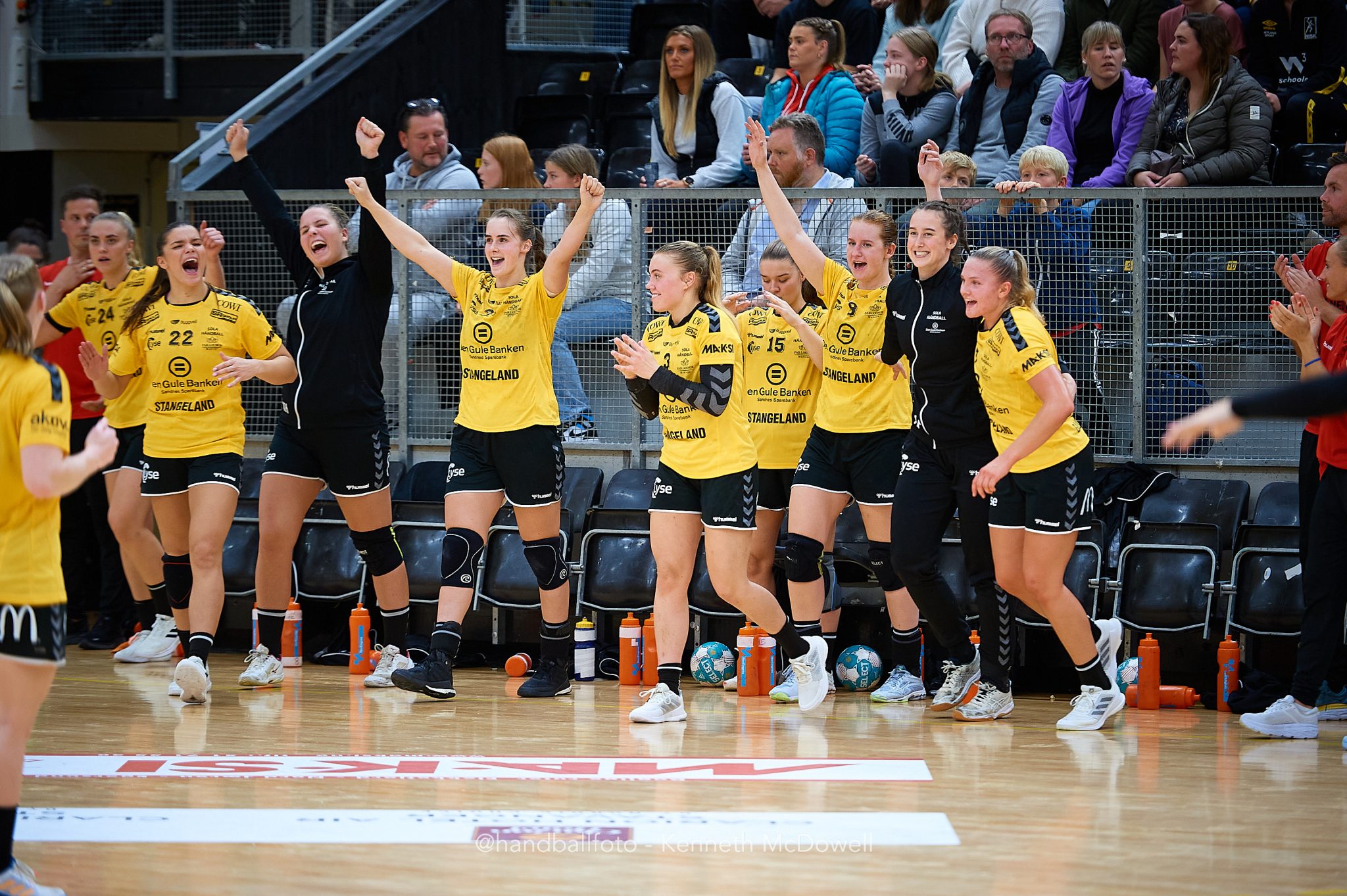 Denne klarte de å beholde frem til pause, da viste resultattavla 14-11 til de gulkledde.