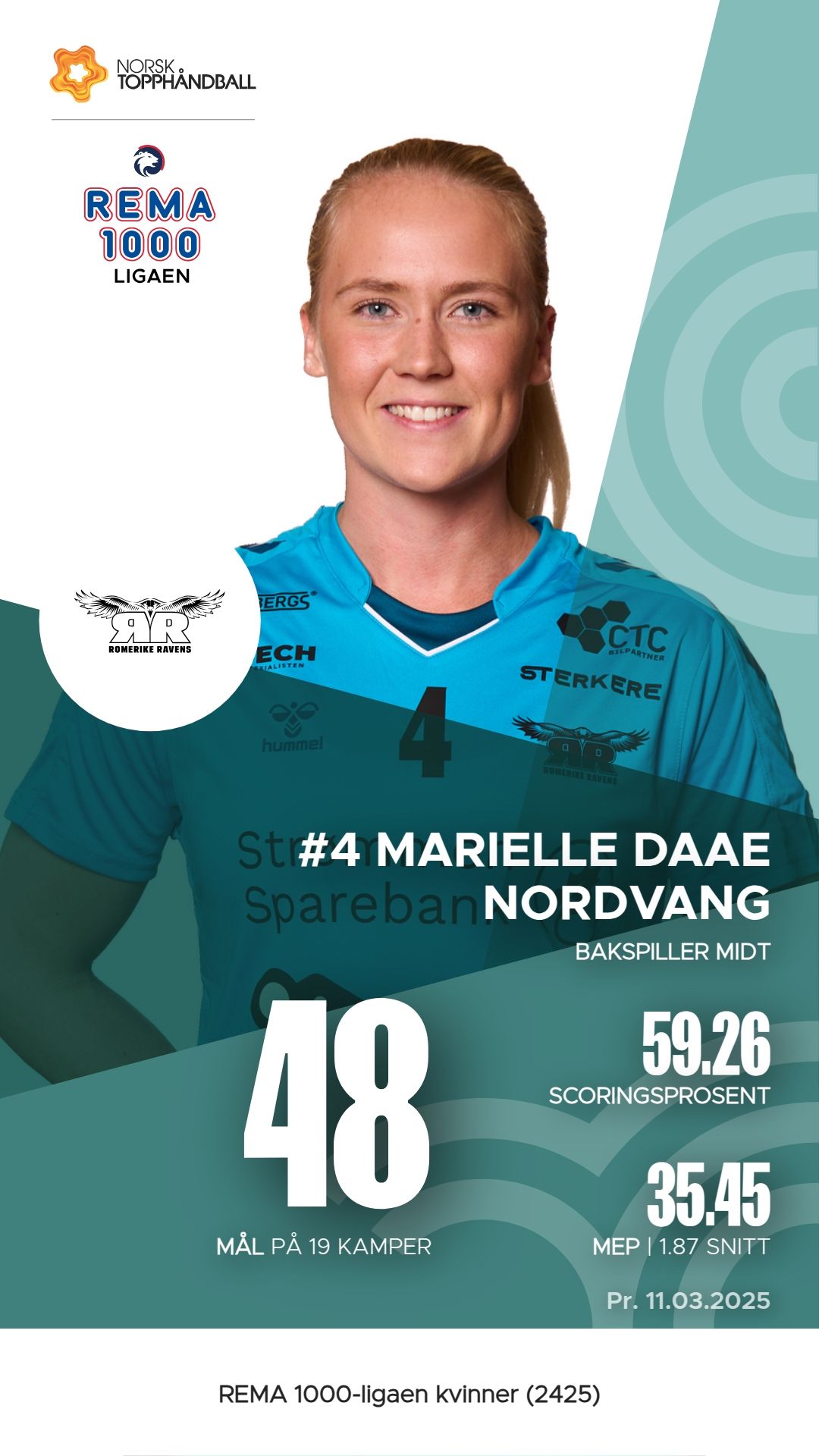 Ravens har flere nøkkelspillere som bidrar til lagets prestasjoner i REMA 1000-ligaen. Marielle Daae Nordvang er en av de mest effektive spillere med 48 mål, 68 assists og en M.E.P. på 35.45, noe som gjør henne til en sentral aktør i angrepsspillet. Nora Young Za Lundell har også vist seg sterk med 53 mål og 3 assists, samt en M.E.P. på 26.65. Constance Hedenstad er en annen spiller å merke seg, med 45 mål og 37 assists, og en M.E.P. på 18. Hennes evne til å skape sjanser er verdifull for lagets offensiv.