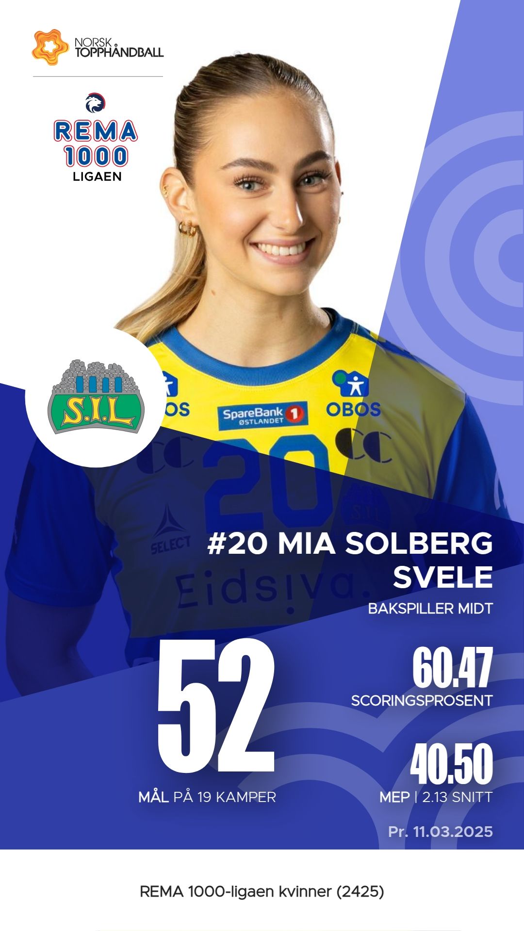 Storhamar har flere fremtredende spillere i REMA 1000-ligaen kvinner denne sesongen. Kristin Venn har vært en nøkkelspiller med 70 mål fra 100 skudd, samt 8 assists og en M.E.P. på 42.45. Mathilde Rivas-Toft har også bidratt betydelig, mens Mia Solberg Svele har registrert 52 mål og 75 assists, med en M.E.P. på 40.50. Line Ellertsen har vist solid form med 50 mål og 46 assists, og en M.E.P. på 36.60. I mål har Eli Marie Raasok vist seg som en pålitelig keeper med hele 110 redninger og en M.E.P. på 30.95.