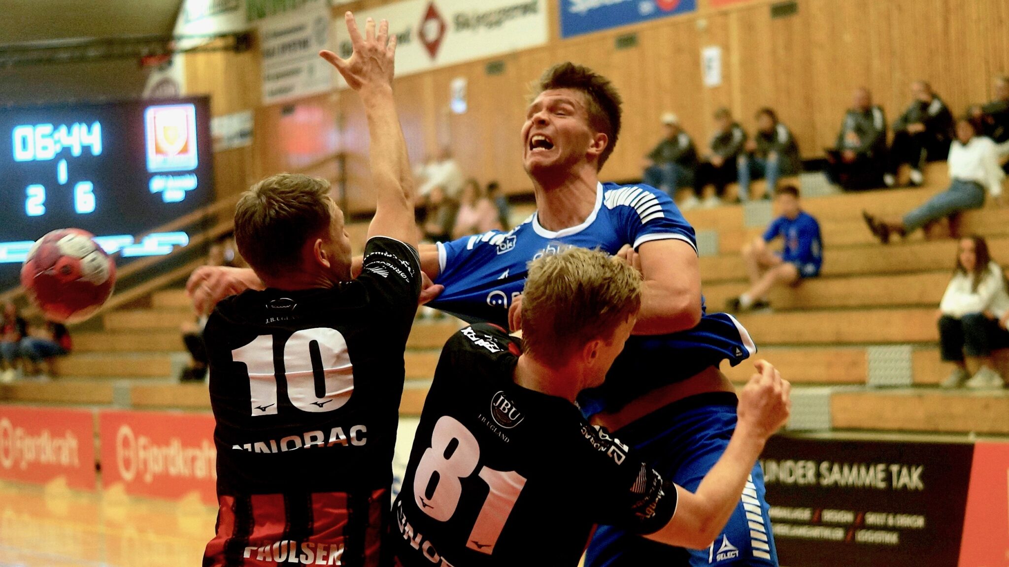 Da står de frem igjen, spillerne som hadde holdt et skyhøyt nivå gjennom hele kampen. Først skårer Simen Søgaard fra kanten til 30-29 etter pasning fra Sander Wennberg Linderud. Så ordner Linderud 31-29 på et skudd fra distanse. Innimellom redder Christian Morillo Lyngbø et gjennombrudd fra nevnte Vidovic.