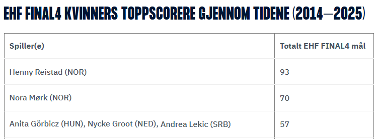 Hun ledet det danske storlaget til bronse i FINAL4 i Budapest – og skrev samtidig historie: Med totalt 93 FINAL4-mål er hun tidenes toppscorer i turneringen.